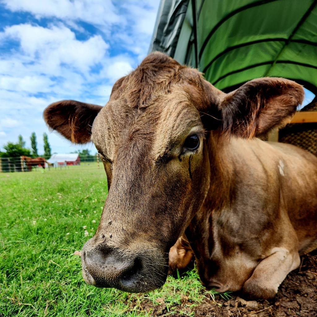 The sweetest pea in the patch. She was our first cow and gave us three beautiful calves throughout her stay. She was rehomed to a herd of cows a few hours away and is now enjoying herd life with her new family.