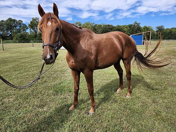 An absolute darling of a thoroughbred. When he came to the farm in March of 2025, he struggled with stability in his back legs and some size defects from growth hormones as a foal. During his stay on the farm, we worked on stability and movement. It was very important to build up those muscles and help him find his feet. He was adopted by a young lady in September of 2025.